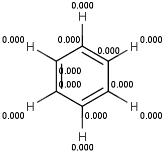 In benzene every carbon atom has the same electronegativity. This is why the partial charge distribution is identical among the carbon atoms. The total partial charge of the hydrogen atoms has the same magnitude with opposite sign. The π partial charge is zero for all atoms in the benzene. In our model, the total charge is composed of two independent components - the π and σ partial charges, which are determined by the π and σ bonds, respectively.