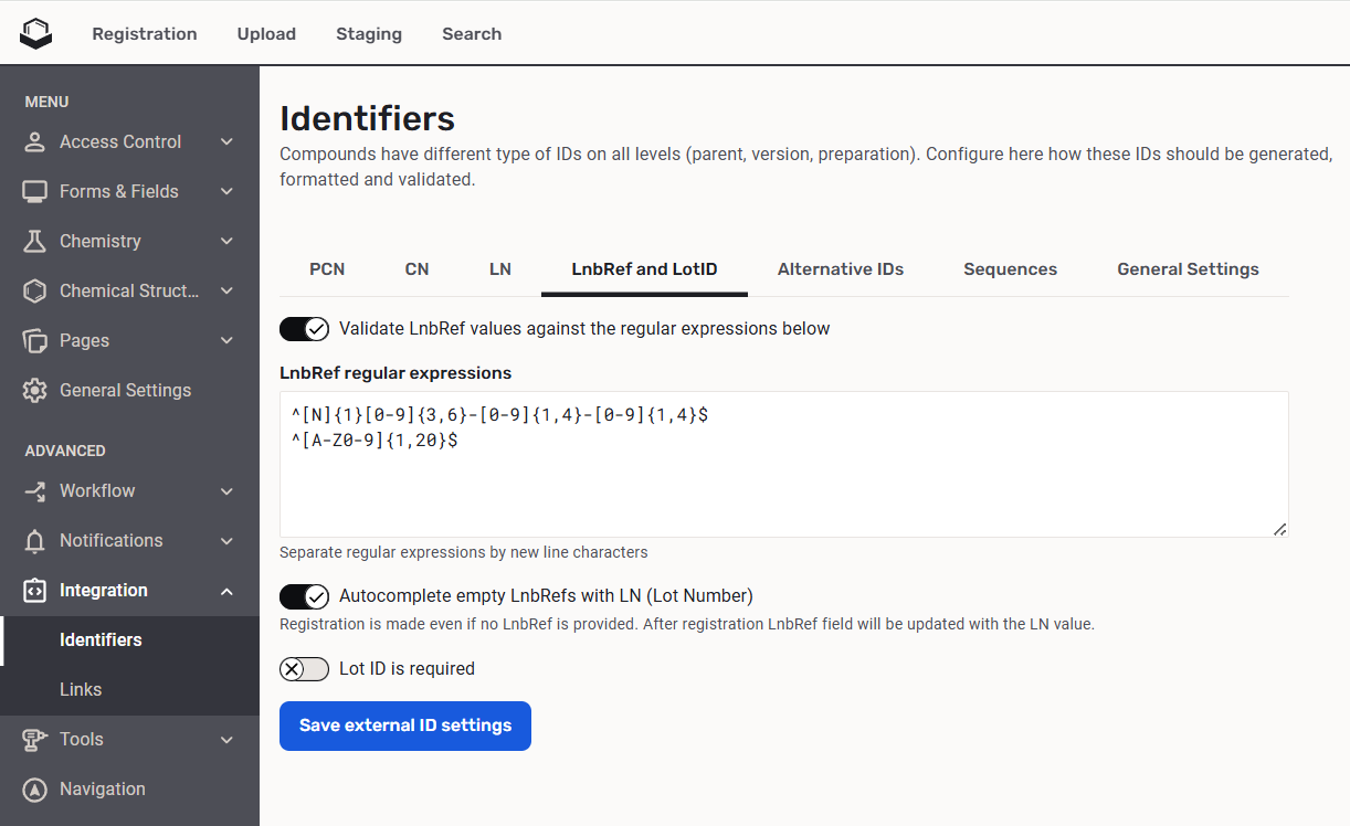 Controls if LnbRef should be validated against the regular expressions during the registration |
