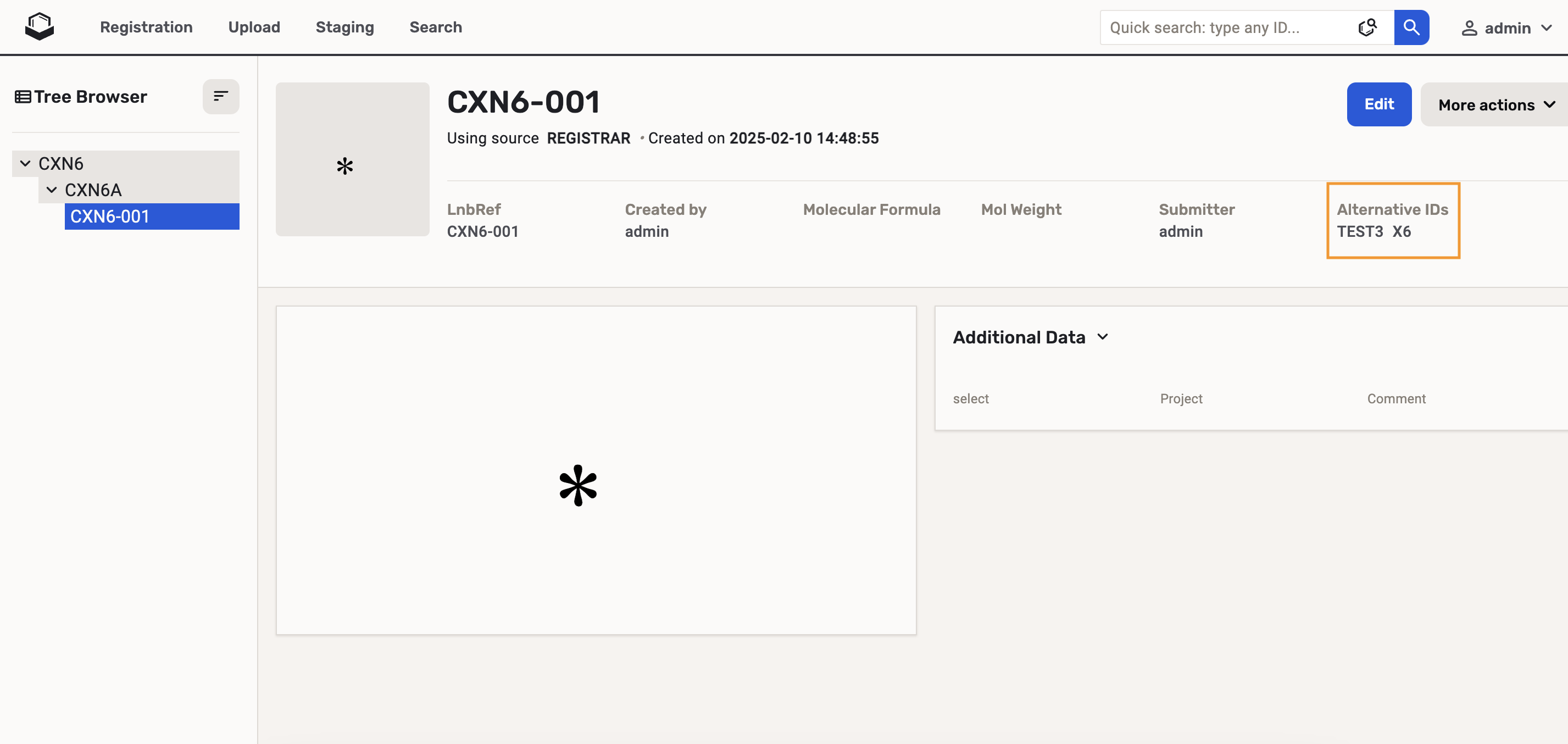After the registration the Alternative IDs will be visible in the Registration summary and on the Browse page.