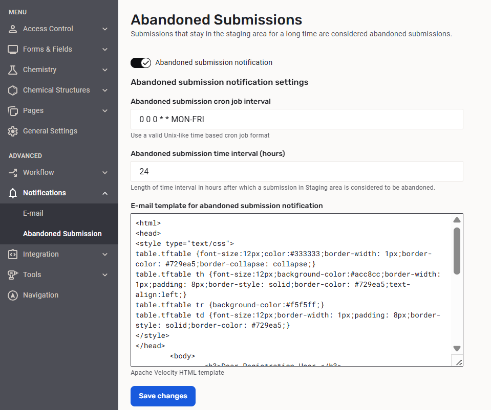 Submissions that are left in the staging area for a long time are considered abandoned submissions. If the setting is ON the user to whom the submission is assigned will be notified periodically about these submissions.