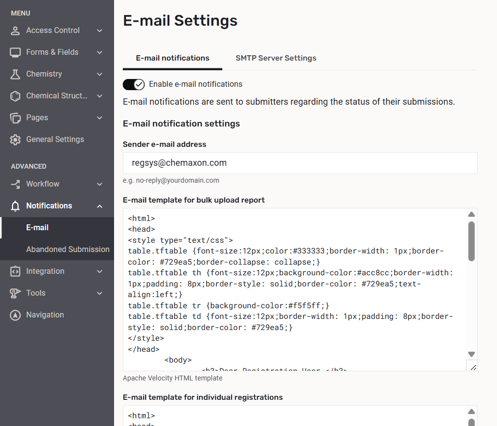| E-mail settings - E-mail notifications |