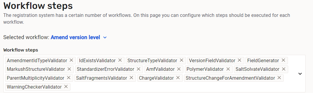| SaltFragmentsValidator | Check if the fragments of the compound to be registered are present in the salts/solvates list. |