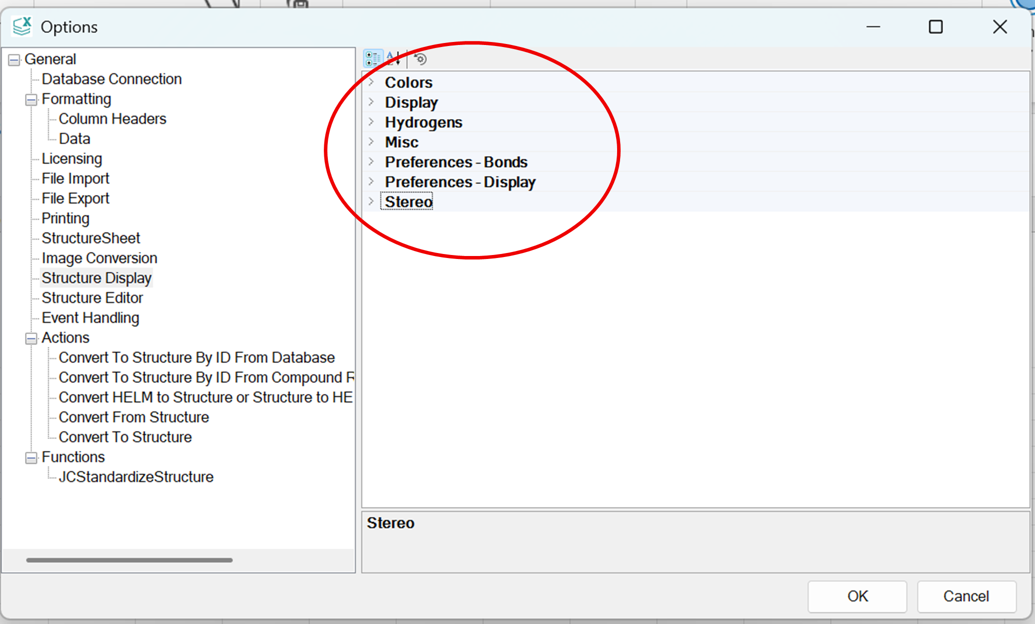 4.) After choosing the Structure Display option you should see the properties which can be set up. Here you can set the following properties:
