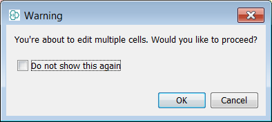 A warning window appears when you are trying to edit multiple rows in a data entity.