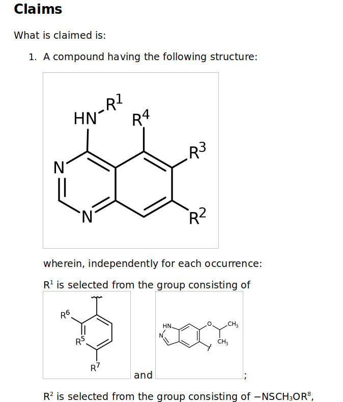 The generated claim draft automatically opens. If the "Export example molecules" selected the list of exemplified structures with IUPAC names and structure images also created.