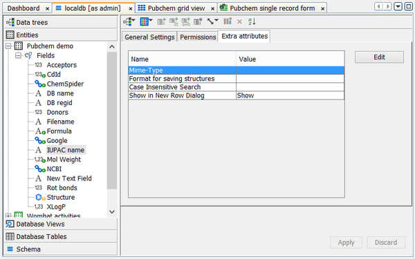 - Column definition: Optionally change the data type definition of the database column (choices will depend on the field type and the database you are using and will include values like: REAL, INTEGER, VARCHAR, CLOB).