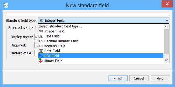 URL Field' from the list of field types. This lets you specify that you want a URL field rather than one of the standard field types.