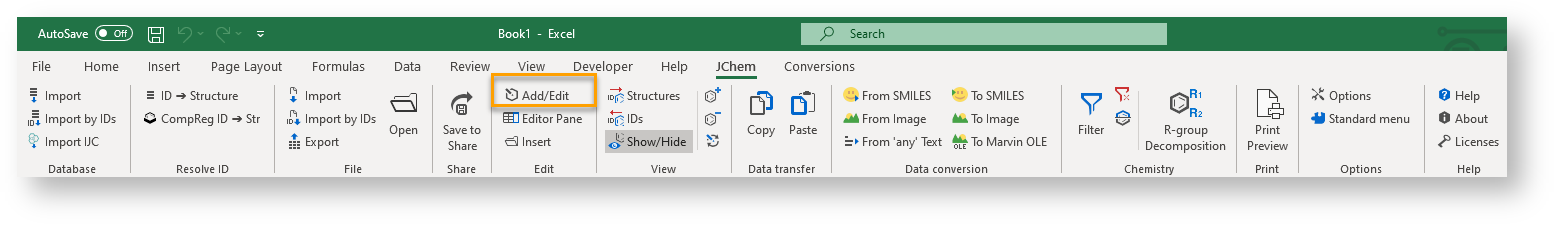 Click the Add/Edit button, which is located under the Edit group. Alternatively, the function can be used by clicking the Add/Edit button in the context menu.