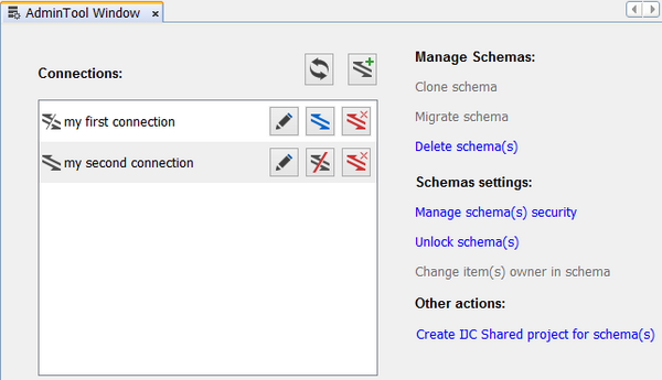When new connection is added, the tool also connects to it and displays it in Admin Tool Window.