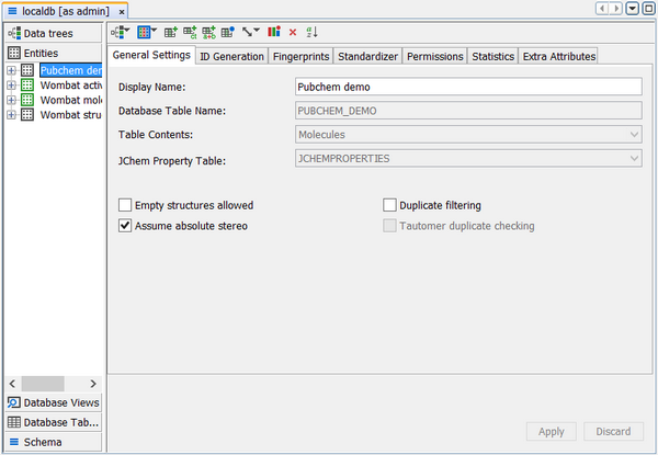 2. Select the entity for the JChem table you wish to change¶
