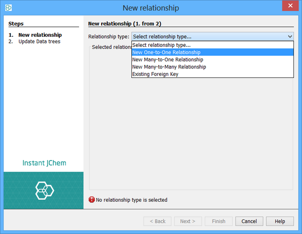 To promote a foreign key to an Relationship select the foreign key and click on the 'Promote to Relationship' button in the toolbar. Alternatively use the third option described above for creating a relationship. A wizard will open and prompt you for any necessary information.