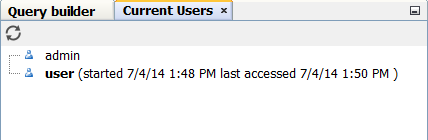 The Current Users window shows the users of a particular schema, whether they are currently connected to the schema, and the time when they connected. By default this window is not displayed. To show it use the appropriate item from the Window menu (it is found under the Other category in the Window menu).
