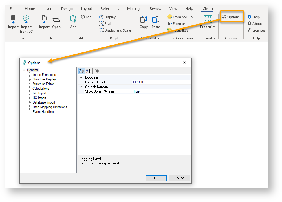 Options in JChem for Office