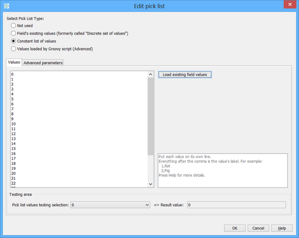 Pick list on fields supersede and enhance former "Discrete set of values". List of values can be bound to a Standard field. Those will be used as a template when editing or searching the field. Typical use case is when one field value is heavily used on multiple records through the database. This is exactly what you would expect from discrete set of values. But there are other advanced options to be setup on a field.
