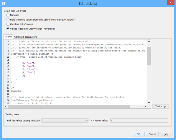 The interface also offers a possibility to validate your Groovy script by clicking the "Test script" button.
