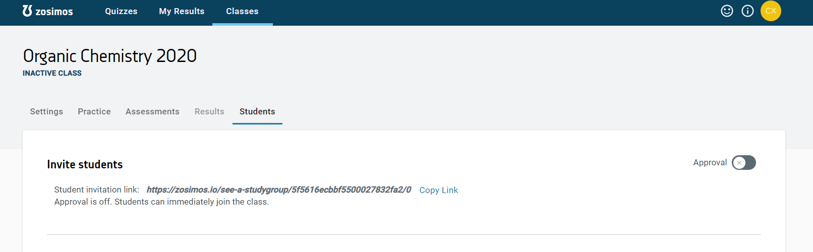 Please note that students can join freely without explicit approval by default. If you would like to better control who gets access to your Class, please set the Approval switch to ‘on’, so that students can join the class only with your explicit permission.