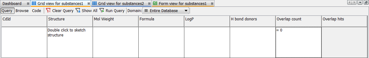 Run query; unique structures are shown in the Browse mode