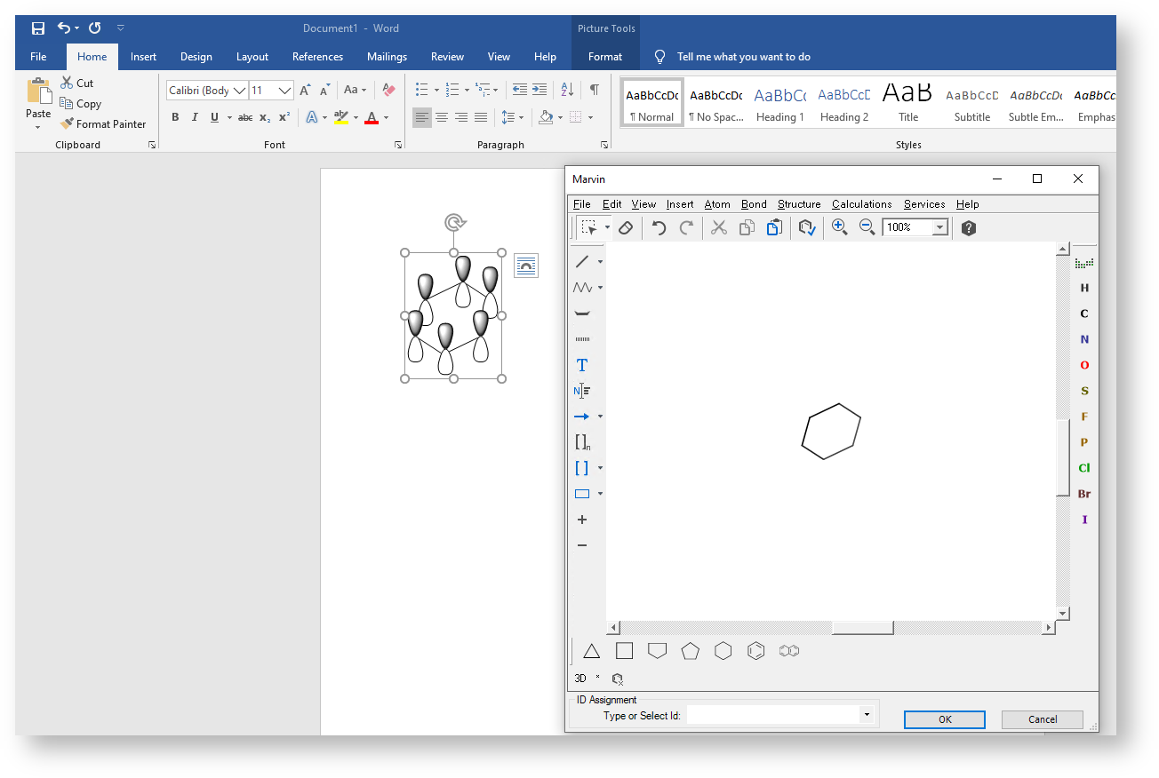 Right-click on a structure and navigate to JChem for Office > Structure Editor. The following editors are supported: