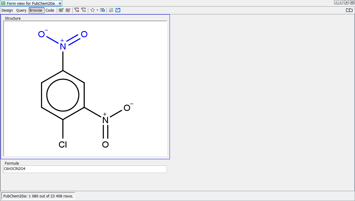 Once import is completed we can execute some queries within the entity to assist in understanding the default rules and how they impact on search and display. Open a grid view or create a new default form view with MolPanel and view all records. The first thing the astute user will notice is that the molecule's visible in the display appear to have not been standardized according to the default rules. In fact, the internal table stores both the original and standardized versions of the structures and there is a visual properties, display setting property for the widget.