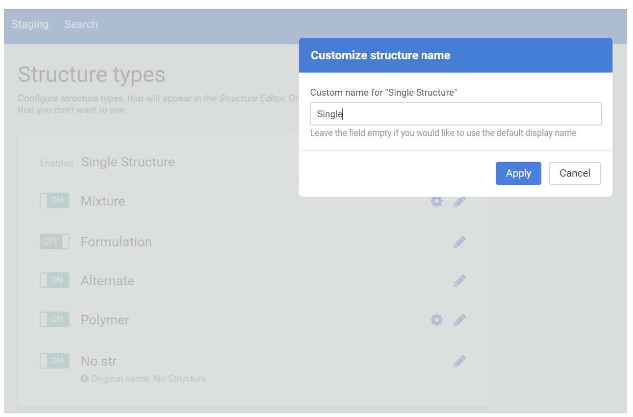 All the structure type names can be renamed after clicking the [Customize structure name] button.