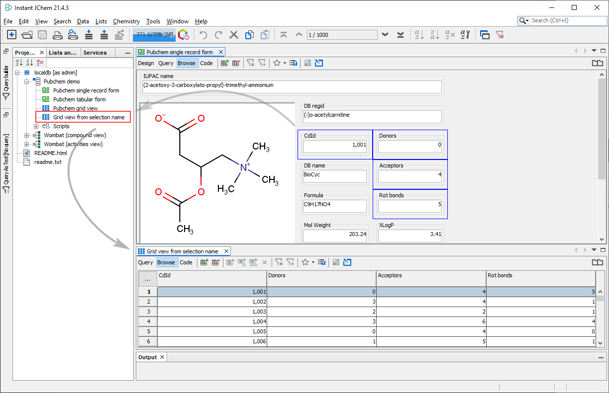 Click Finish. The new Grid View from Selection is generated, and its node is displayed under the data tree in the Projects window.