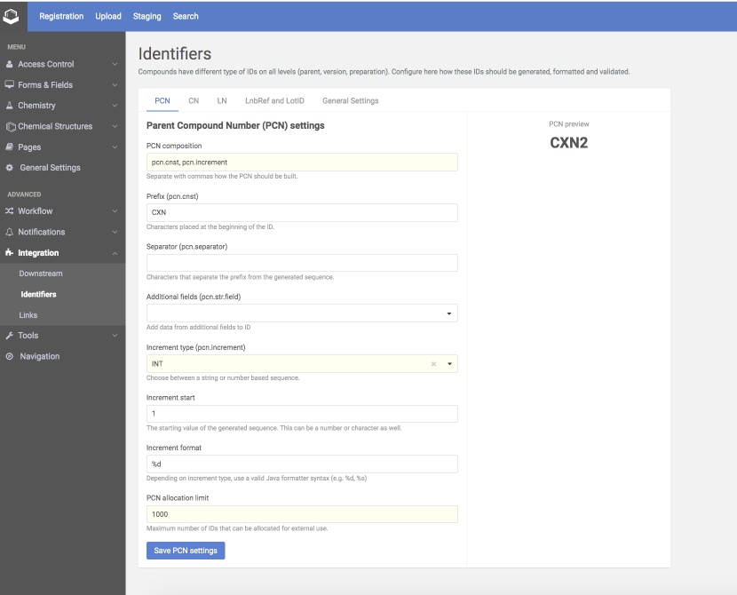 | Id Generator Class | Class name of the corporate ID generator | com.chemaxon.registry.identifier.DefaultSequenceGenerator |