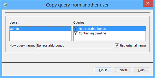 - Do not create temporary query if it returns no hits : By default, even if no hits are returned, a temporary query is created, which you can then rerun. If you select this checkbox, no such temporary query will be created.