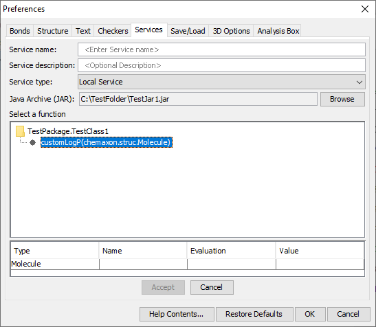 - Java Archive (JAR): Browse the JAVA Archive file, which contains the classes of the desired calculation.
