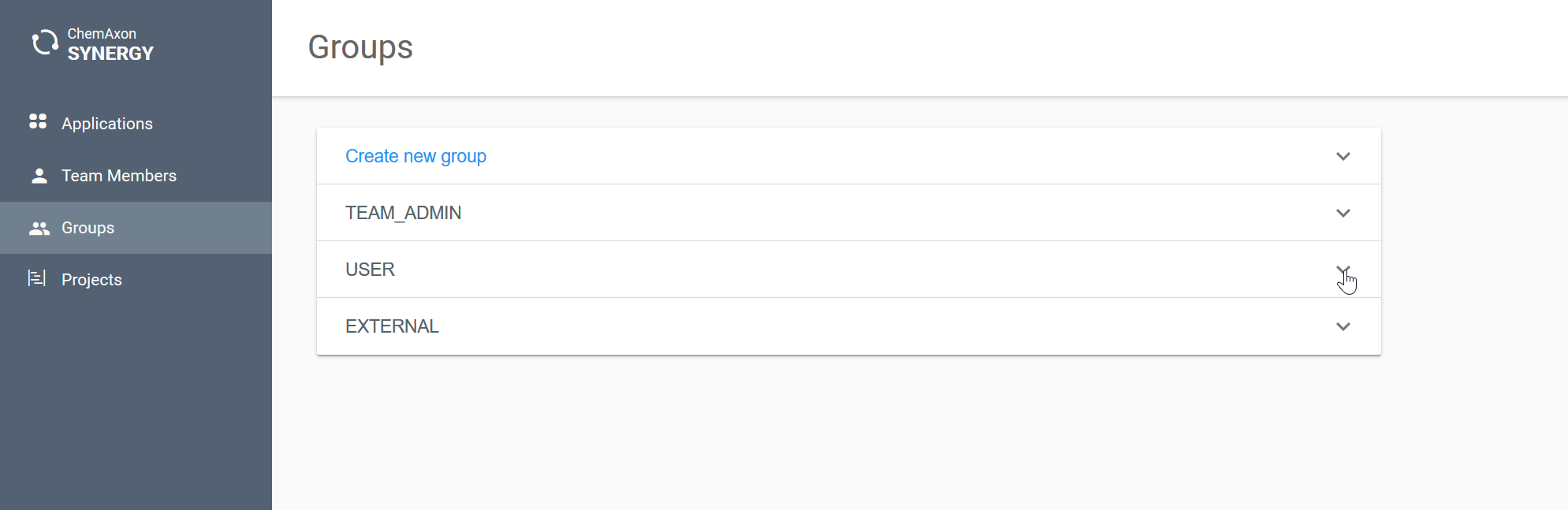 Groups in Synergy help you administer team members in different applications. Permissions are granted to these groups within the specific application. e.g. please refer to Chemaxon Assay Documentation.