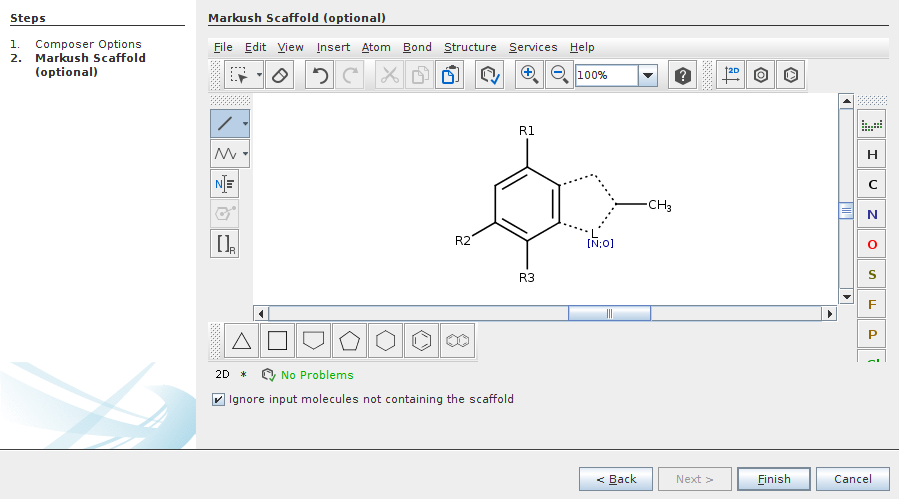 After you click on the Finish button, the wizard automatically generates a Markush structure based on the input set.