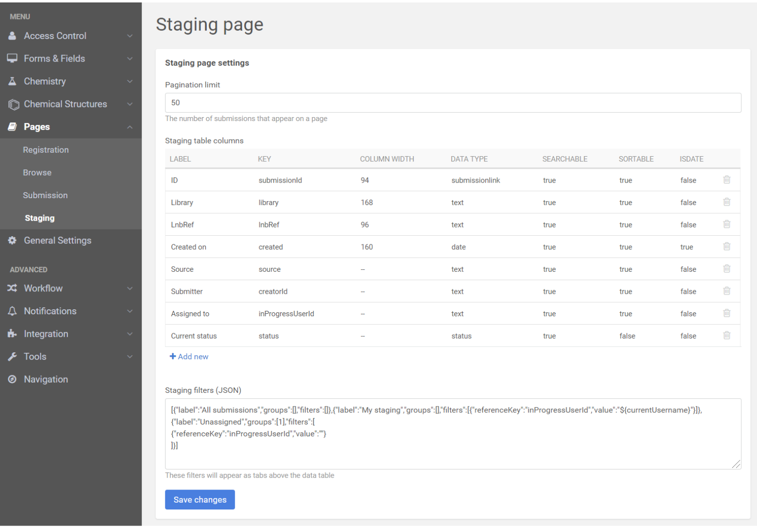 When configuring Staging tabs and considering group filtering the group name has to be replaced by the group Ids within the JSON configuration.This change should be made manually. E.g.