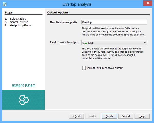 - Specify the field in the target table whose values are to be used in the output. Typically this is the ID field which will be selected by default, but if, for instance, your target table also contains a separate compound ID then you might want to specify this field.
