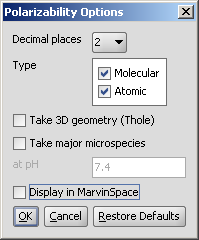 Fig. 3 Polariizability Options panel
