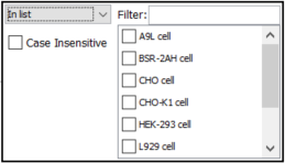 - The IN LIST (and NOT IN LIST) operator which requires you to enter a comma separated list of values (e.g. 1,2,4,8,16). Since IJC 5.3.2 "smart paste" has been implemented when the IN LIST operator is specified, which allows easy pasting of values when present in a recognisable format that is not comma separated. This includes copy of a list from the lists and queries window, text format when the values are separated by new line characters, and a column of values from Excel or Open Office.
