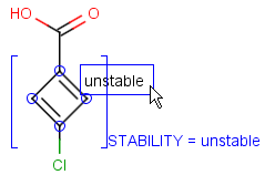 g,gh, orghe) and at least one undefined R-atom is present in the query, then substitution is blocked at all other positions. In other words, this means that a full fragment matching is performed even if otherwise substructure search was specified. (Note, that in case when there is no undefined R-atom in the query, individual positions can be blocked using the s* query property.)