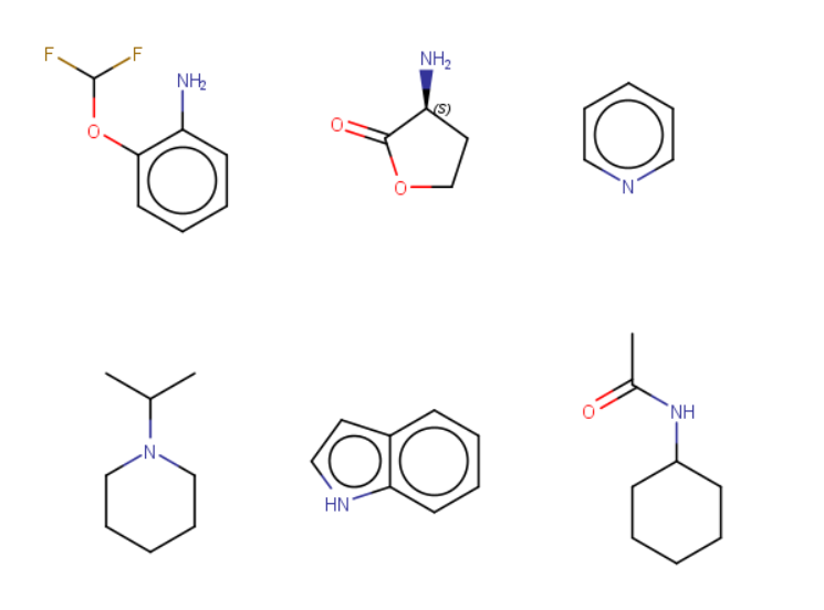 The reactant files are acid-halides.smiles and nucleophiles.smiles. Several sample molecules from each are shown below: