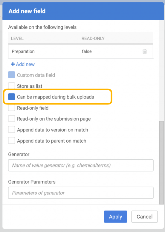 During the upload, the user can provide the salt/solvate Ids and multiplicities for each compound structures if needed. Salts/solvates from the Salts &Solvates Dictionary can be referred by their Id and multiplicity in the SDF within a data field that is going to be mapped with the "Version salt/solvate ID" and "Version salt/solvate multiplicity" fields (Figure)