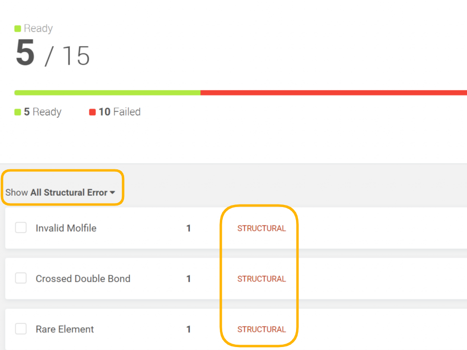 The upload report in PDF contains all items from the uploaded SDF with all the relevant info. The registered structures appear in the first section of the PDF, the failed ones are after.