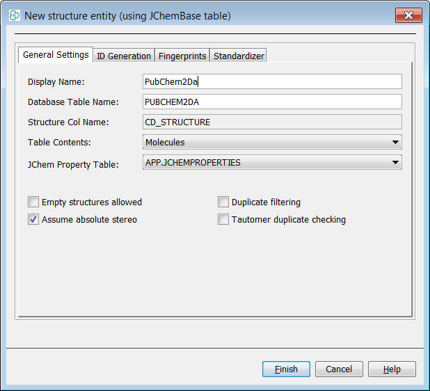 This tutorial will explain why it is a valuable step to add a standardizer rule set to your structure based entities and how to apply a standardizer within the IJC desktop. Application of a standardizer or set of "Business rules" brings order and uniformity into the representation of the molecules in your structure based entities. They also serve as your internal query reference standard when searching for molecules or indeed extracting them for further processing. As such it is highly important to consider the available options and the effects of applying these standardizer rules in a deterministic order. In particular, the form of the "allowed" queries in relation to the database standardization is considered, when many forms are possible. As such, this tutorial acts as a simple guide to show how to set up an entity with the default standardizer applied and then shows a further example where by a fixed transformation is applied to the Nitro group. We use the standard PubChem molecules in the example. We could choose to use either the 2D or 3D sdf files available and in either case we use the first file in the list. We also use the local derby database for the purposes of demonstration, the Oracle / MySQL approaches are essentially similar using the Instant JChem interface.