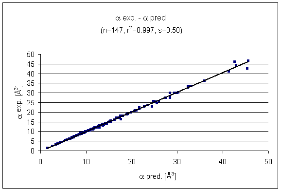 Fig. 5 Predictied vs. experimental results of the polarizability prediction