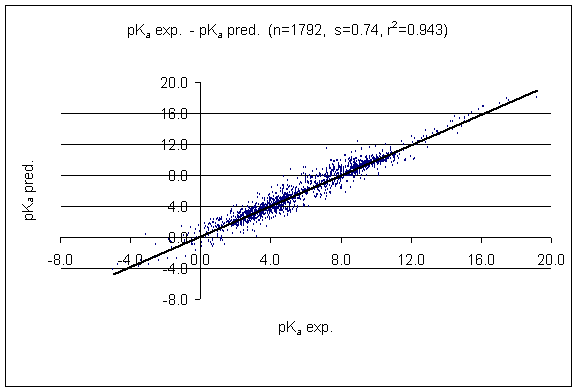 Fig. 1 Predicted vs. experimental results of the pKa calculation