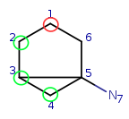 We have four matching atom pairs so far: query atoms 1, 2, 3, 4 are mapped to