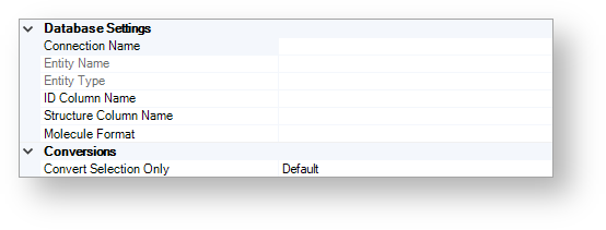 The figure below shows the available database and conversion settings.