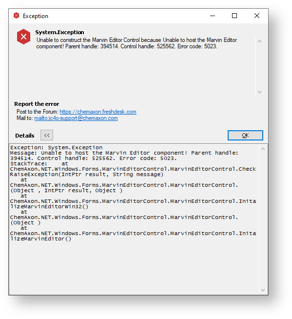Unable to Construct the Marvin Editor Control error message¶