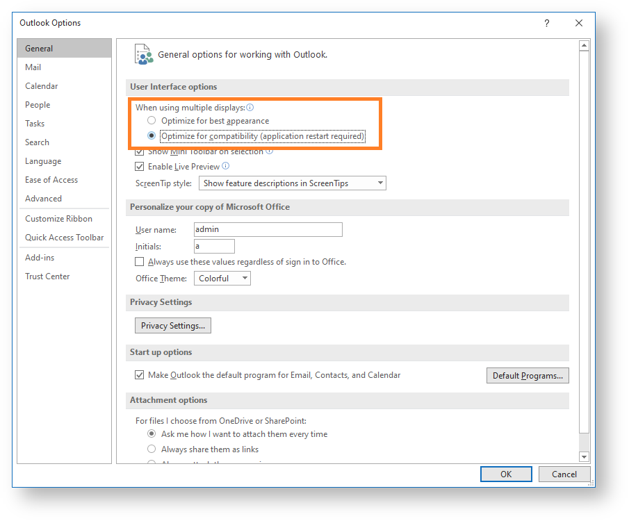 Change the default option: "Optimize for best appearance" to "Optimize for compatibility"