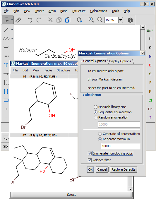 Marvin5.2 introduced the enumeration of homology groups. Homology groups are R-groups represented as pseudo atoms - with the names covering a set of R-groups either built-in or user-defined.