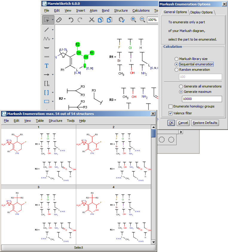 If part of the Markush structure is selected, only the generic features in the selected part are considered for enumeration/calculation. This allows focusing on a particular area of the Markush structure.