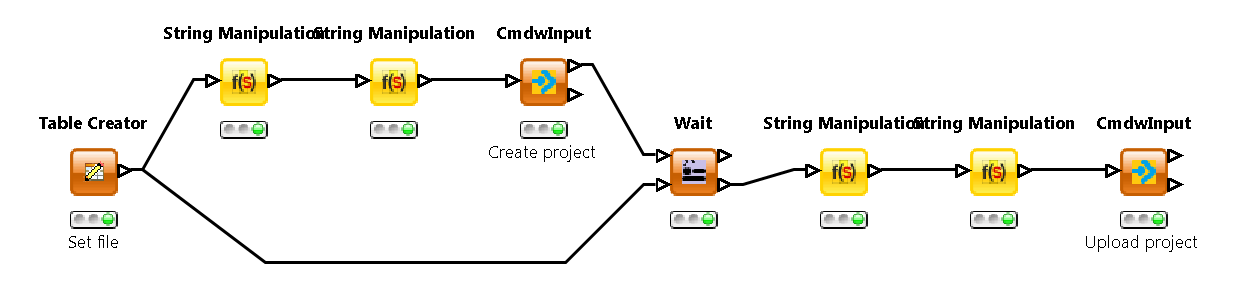The following KNIME example workflow illustrates how you can annotate a selected document via the createProject ** and upload the created project to the ChemCurator integration server by the ** **shareProject ** command line functions of ChemCurator .