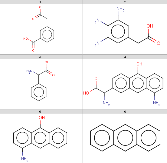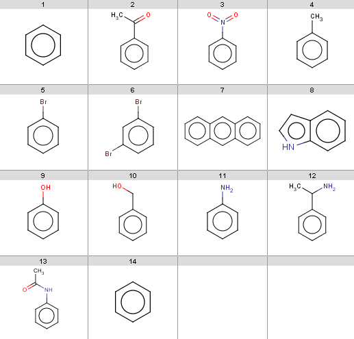 Our input molecules are stored in the aroms.smiles fille. The molecules are the following: