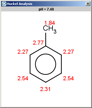 In the result the array elements are separated by ';' characters, and invalid values (NaN, not-a-number values) are returned when there is no result calculated for the atom; in case of energyE() these are the non-aromatic atoms, represented by empty strings: